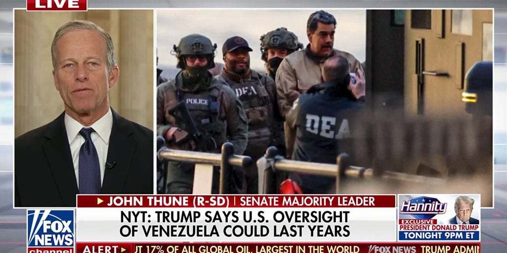 Senate Majority Leader John Thune R-S.D., joins ‘America’s Newsroom’ to react to the Senate’s war powers vote, President Donald Trump’s Venezuela strategy and protests targeting ICE in Minneapolis.